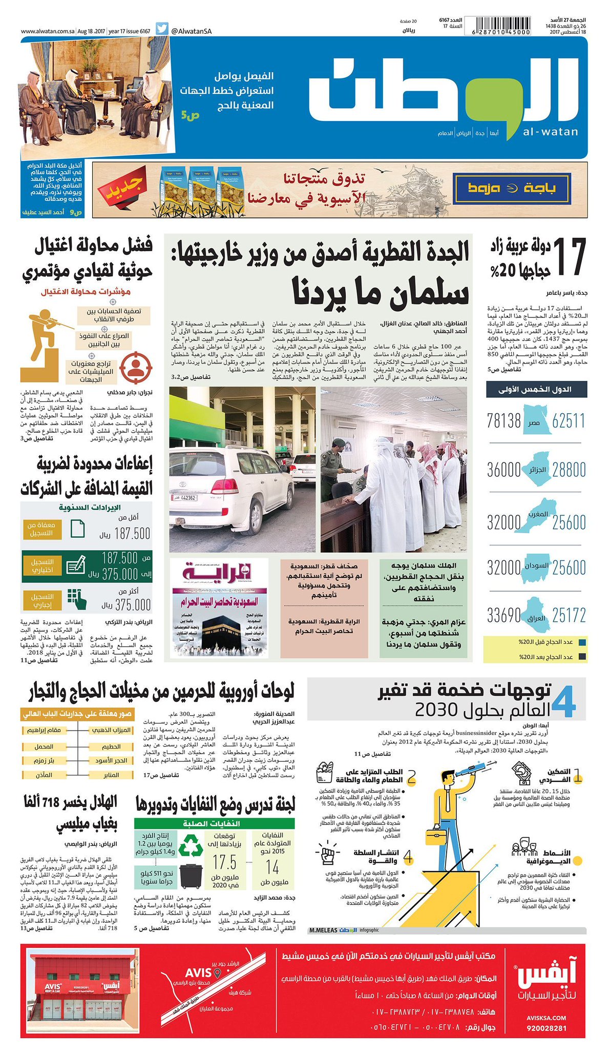 صحيفة الوطن القطرية/وزارة الدفاع الأمريكية (بنتاغون)، تعلن ... from pbs.twimg.com وقال «شبانة» في حديثه لـ«الوطن»: الوطن بوابة إخبارية شاملة تقدم أحدث أخبار مصر والدول العربية والعالم وأخبار الرياضة والفن والاقتصاد والسياسة وخدمات الطقس والوظائف والأسعار. جريدة الوطن :الصحافة المصرية:الكلمات الدلالية الوطن جريدة الوطن. «الحمد لله ربنا كلل مجهودي، بالعثور على جثة المهندس عادل نصار، بعد مناشدة ابنه لنا في المشاركة، للبحث عن جثة والده»، مشيرًا إلى أن الجثة كانت عالقة داخل. معلومات عن صحيفة الوطن :